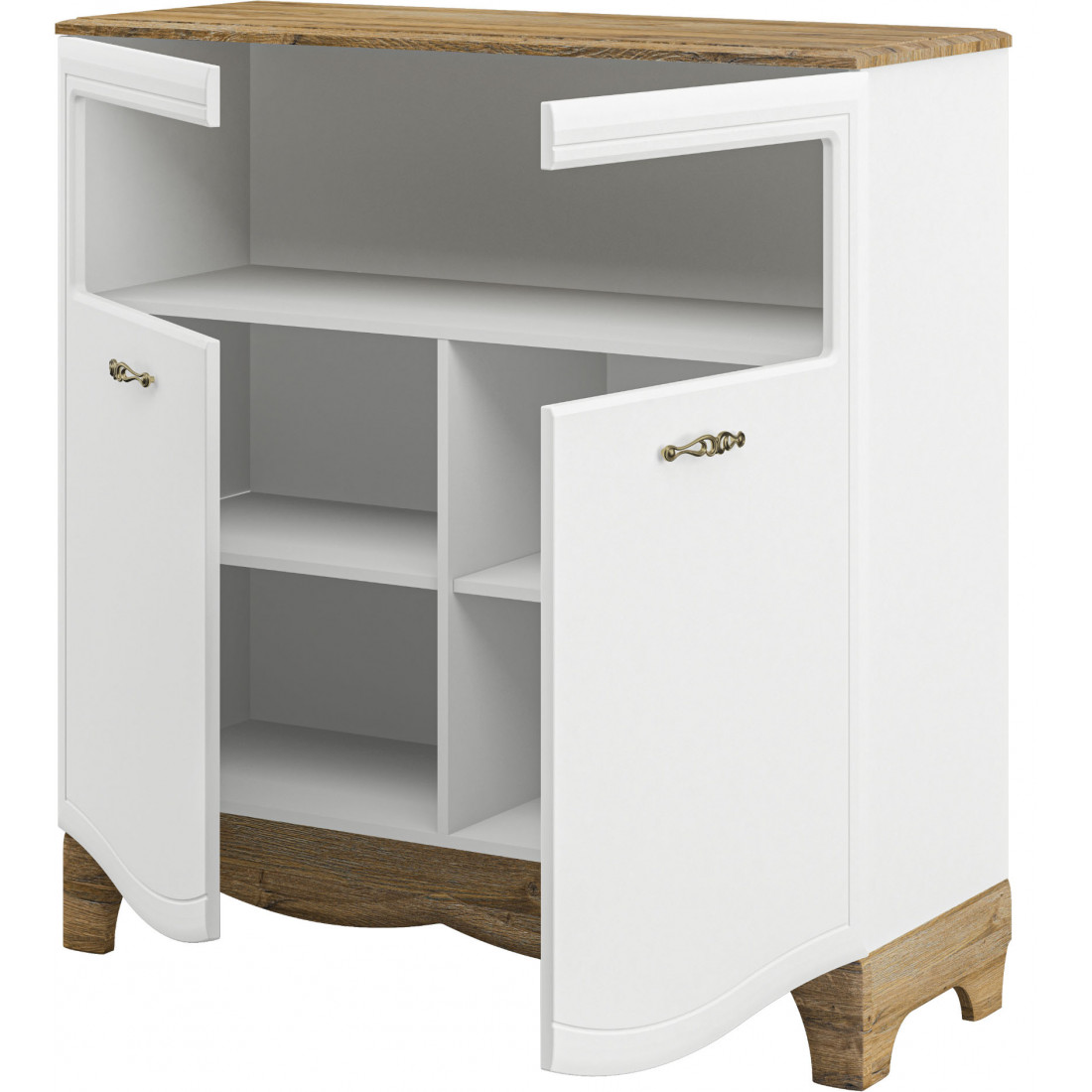 • Цвет ЛДСП - «белый», цвет ЛДСП полки - «дуб ниагара», 16мм, 25мм Kronospan Szczecinek (Польша), соответствие с нормами EN 316 и требованиями норм EN 622-5.