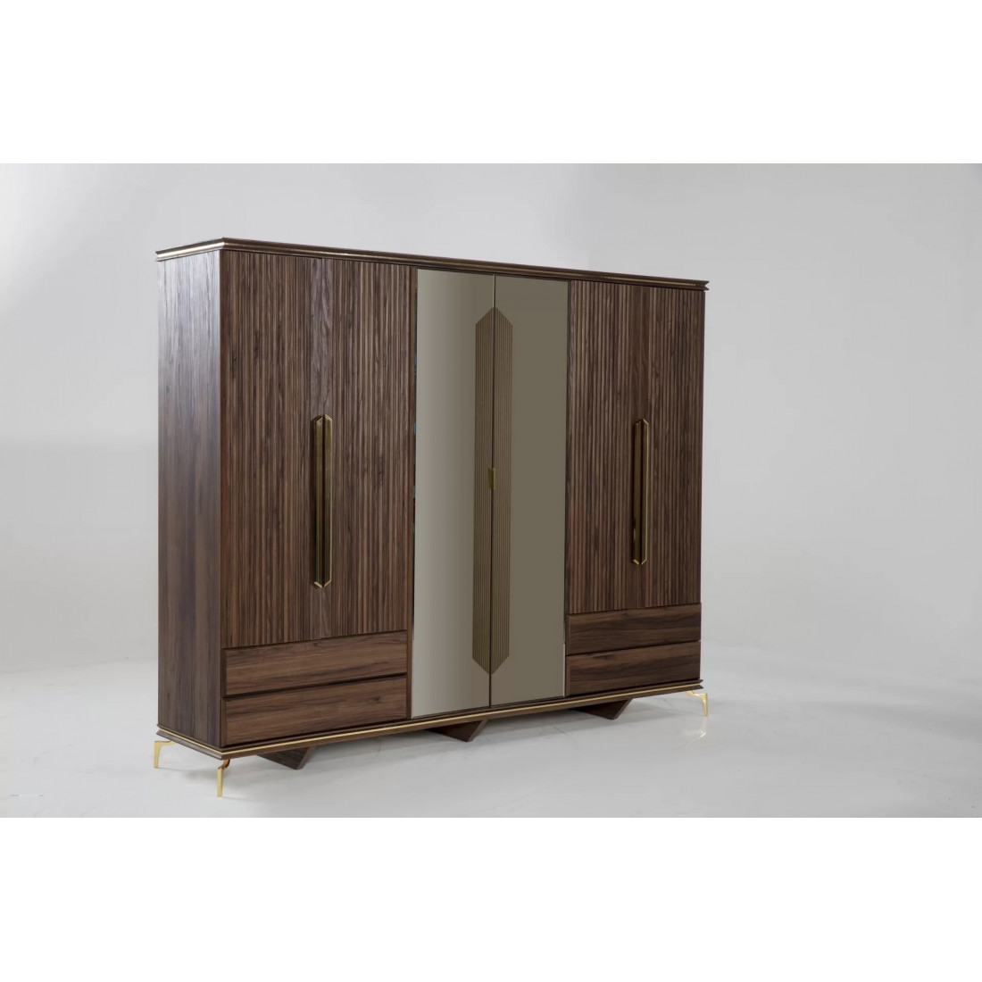 Шестидверный шкаф для одежды с зеркалом "Montego" – это великолепное и выгодное предложение для большой просторной спальни или гардеробной. Взять один большой шкаф намного удобнее, чем набирать много маленьких и думать, хорошо ли они сочетаются между собой. Изделие выполнено в современном дизайне.