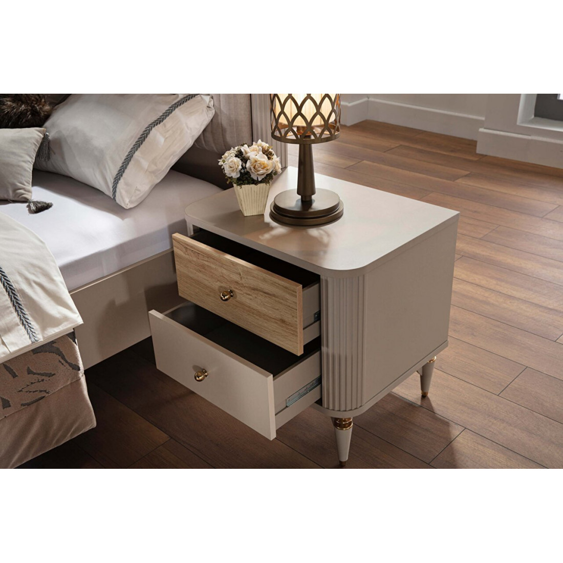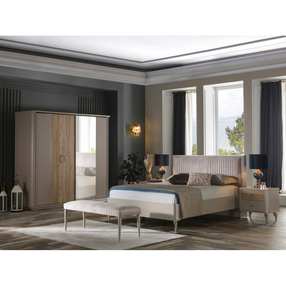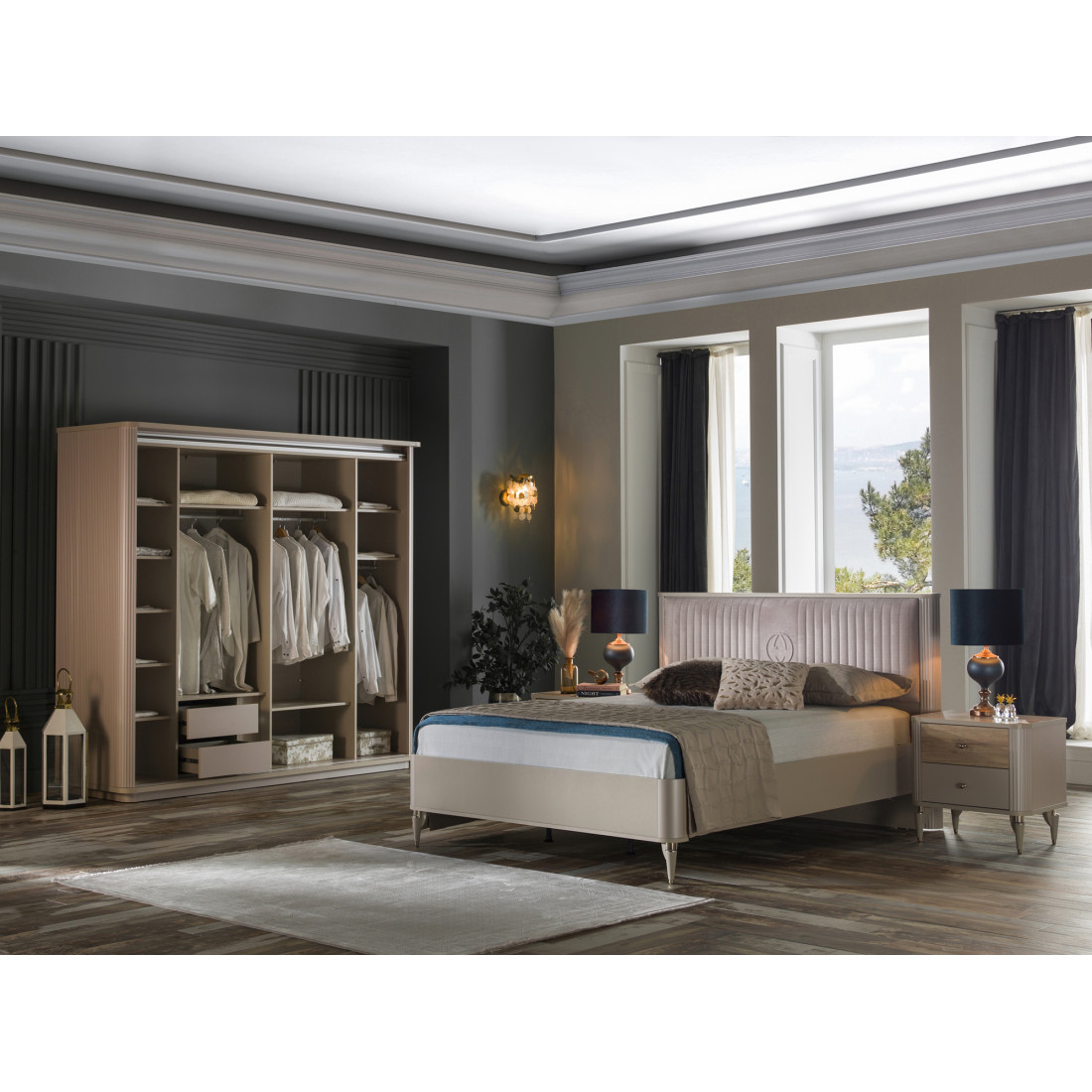 В цветовой гамме спального гарнитура Sanvito предпочтение отдается кремовому и ореховому цветам.