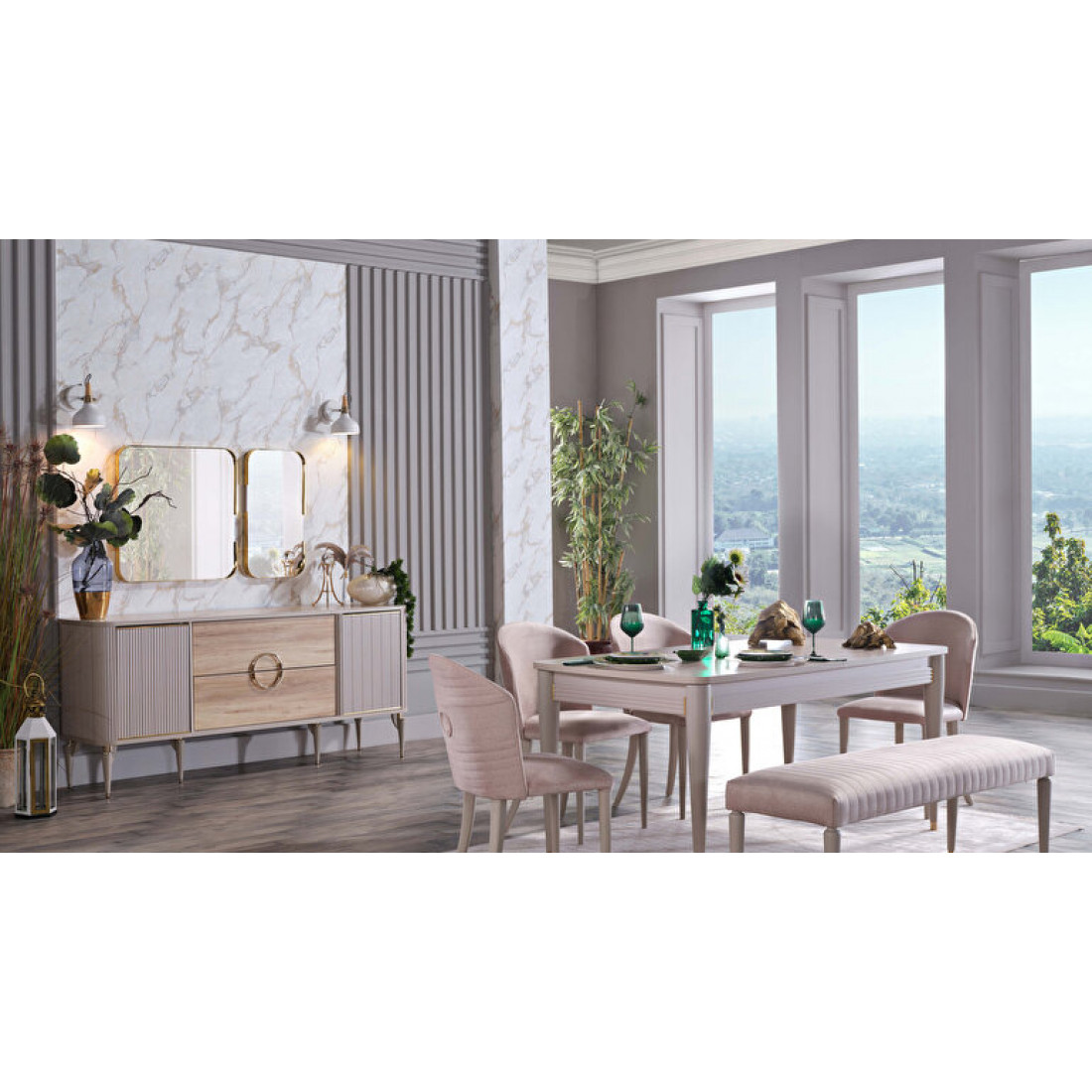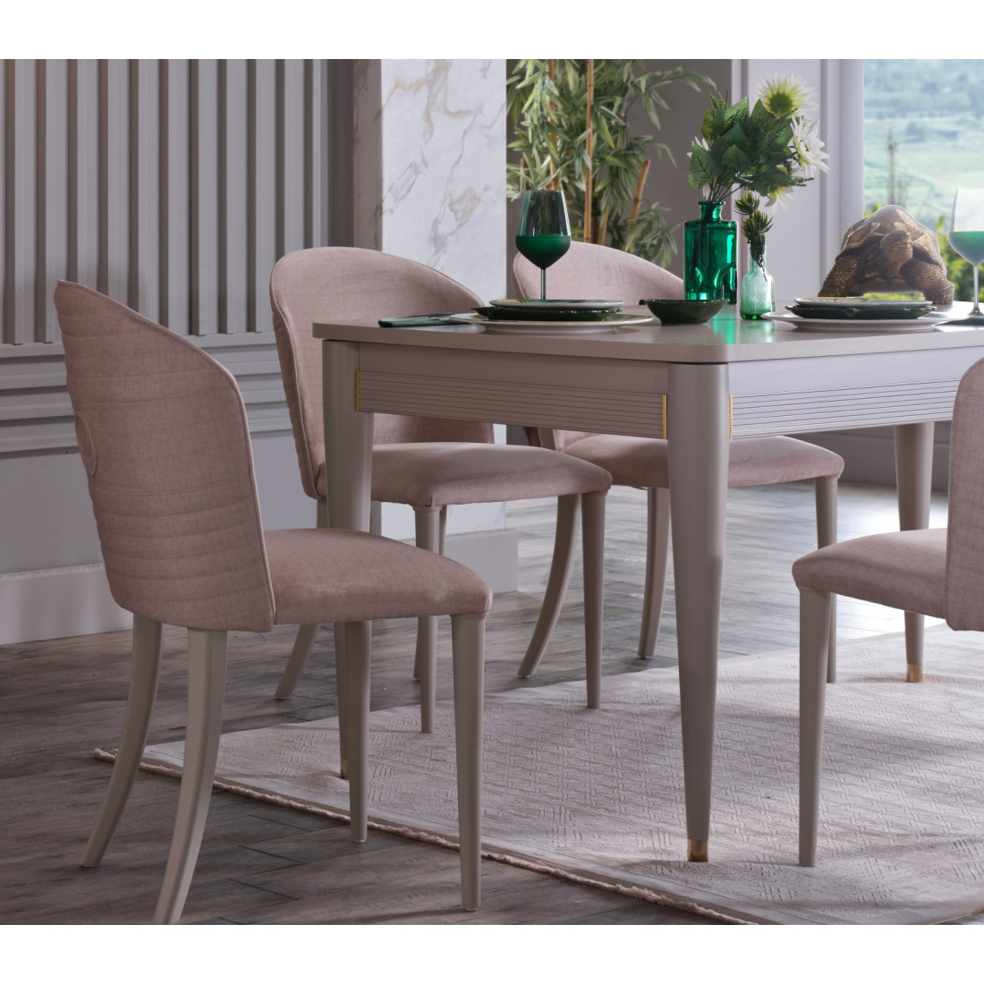 Комплект из двух стульев Sanvito в стилистике всей коллекции. В дизайне присутствуют вертикальные линии, цветовая гамма — кремовая. Стулья имеют мягкое сидение и спинку. Они замечательно сочетаются со столом Sanvito и с другой мебелью данной серии.