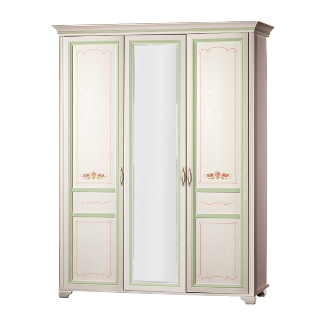 Фасады: МДФ, декоры – ясень белый, патина, рисунок, зеркало с фацетом