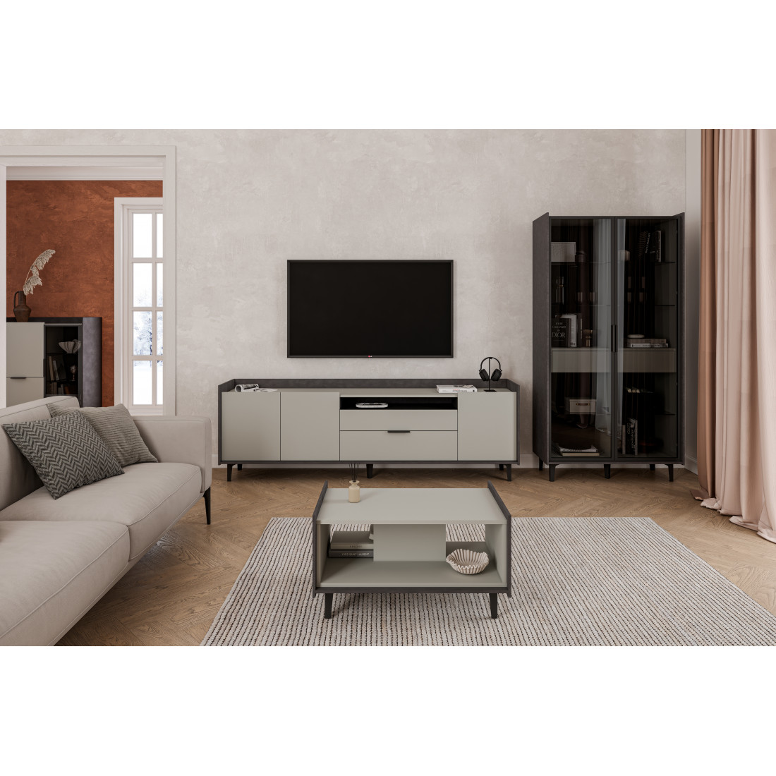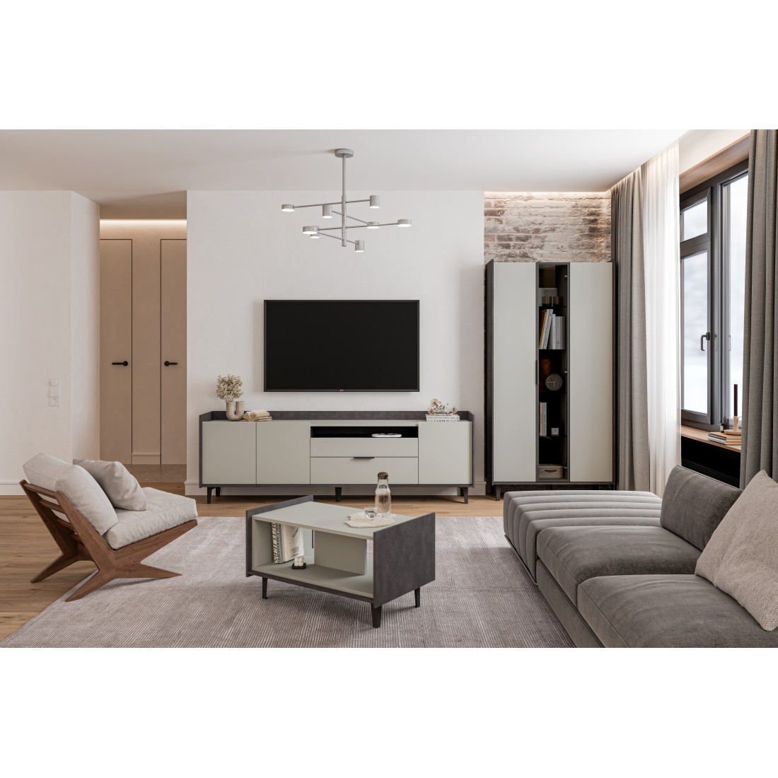 Материал фасада: ЛДСП 16 мм, цвет Дуб Элисон, Жемчуг, Лунный камень