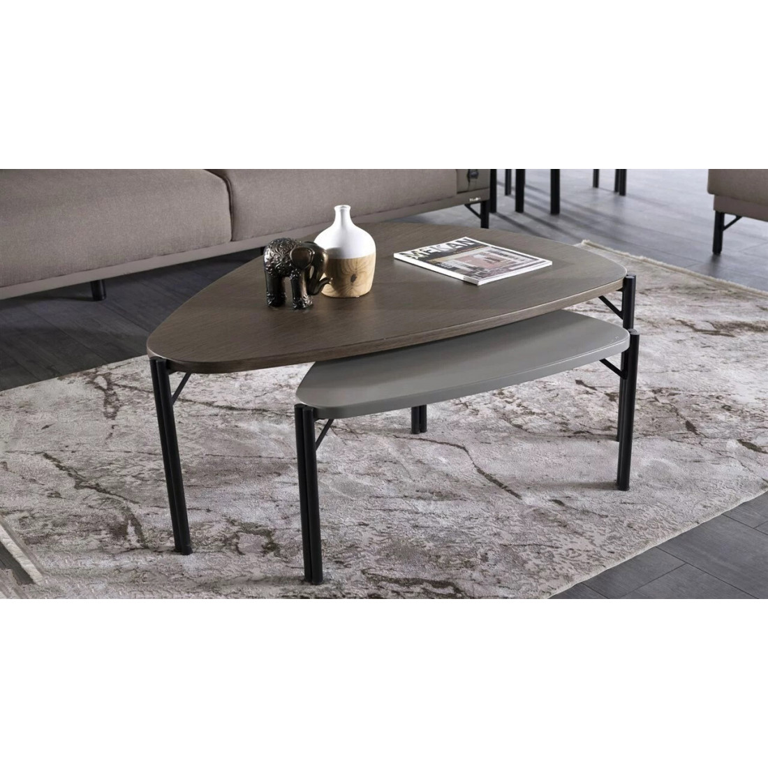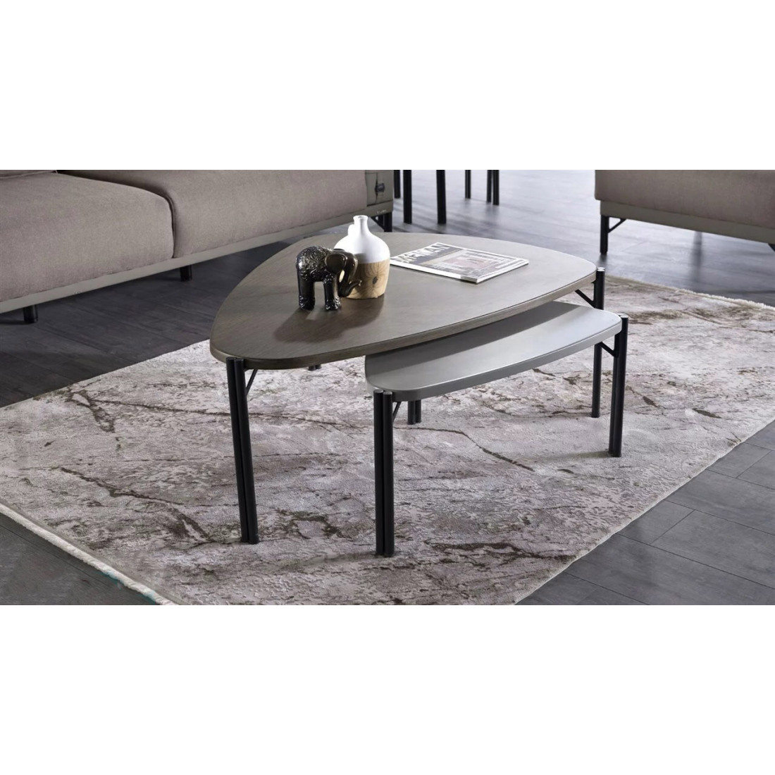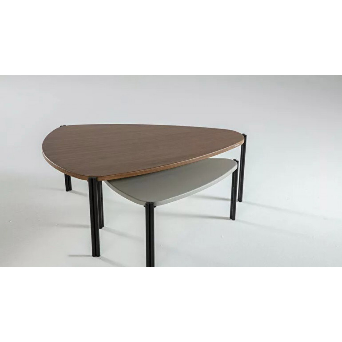 В наборе журнальных столиков "Палвин" используются основные цвета коллекции. Также им присущи необычные формы столешницы.